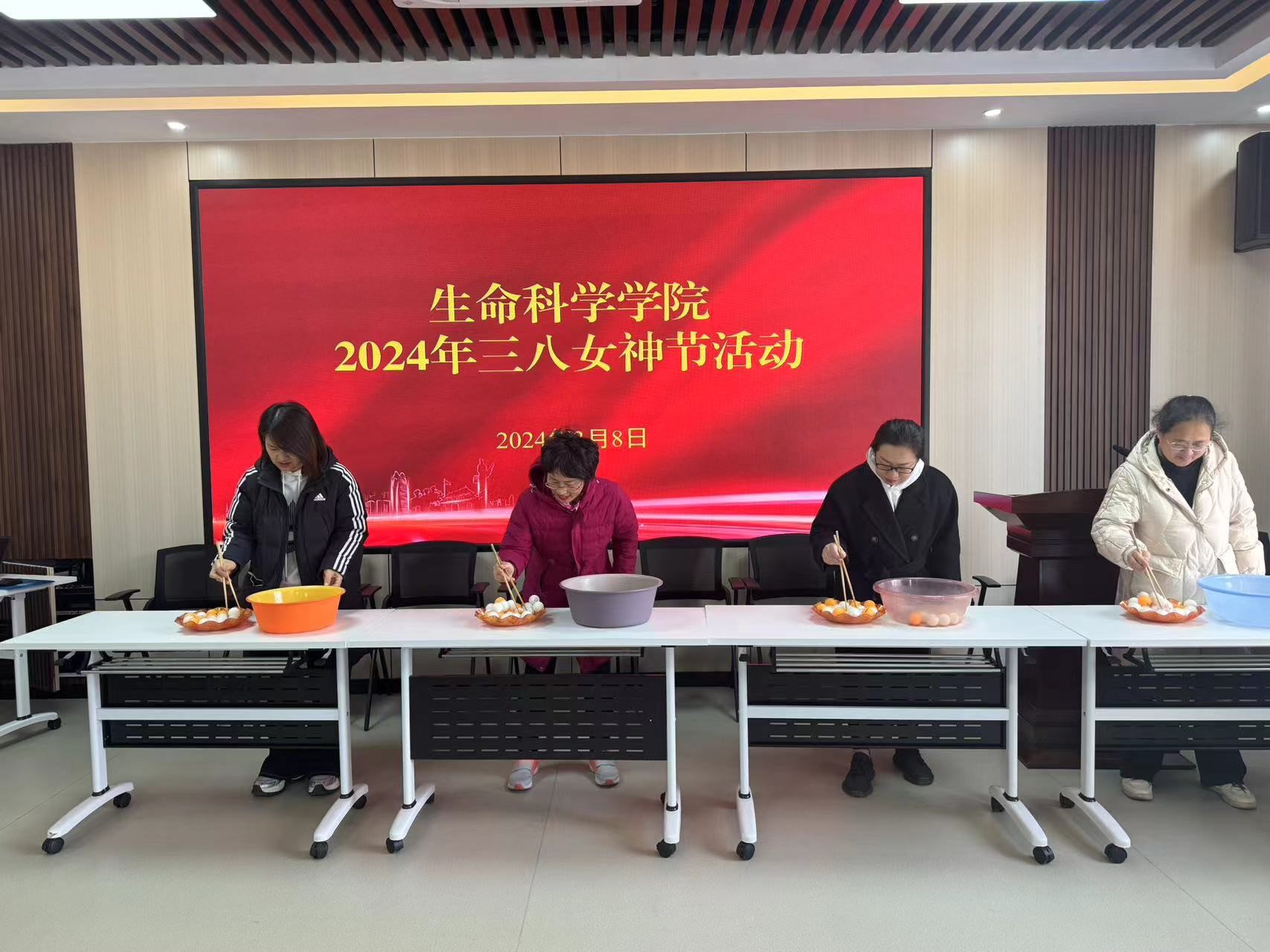 为了纪念第114个“三八”国际妇女节,展示我院女教工的风采,让全体女教职员工过一个和谐、快乐、舒缓、放松的节日,2024年3月8日下午,新葡萄8883官网AMG在生物楼C312举行了“三八妇女节活动”--趣味运动大比拼。本次趣味运动共设计了三个游戏项目:包括夹乒乓球、叠报纸和搭纸杯塔。