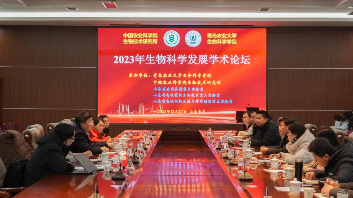 12月27日,中国农业科学院生物技术所副所长谷晓峰、国家杰青林浩研究员、科研管理处王友华处长等一行访问生科院,并共同举办2023年生物科学发展学术论坛。青岛农业大学生科院党委书记孙景福、院长沈伟会见来访客人并出席学术交流活动。