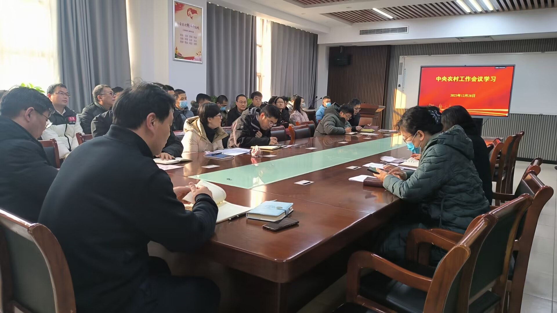 会上,大家集体观看了《中央农村工作会议在京召开,习近平对“三农”工作作出重要指示》和《中央农村工作会议解读:推进农业农村现代化 有力有效推进乡村振兴》的视频,共同学习了新华社的文章《锚定建设农业强国目标 有力有效推进乡村全面振兴-习近平总书记对“三农”工作的重要指示指明方向、凝聚力量》。孙景福指出,作为农业院校,要坚持把学习贯彻中央农村工作会议精神作为重要政治任务,在学深悟透中担负起强农兴农历史责任和时代使命。