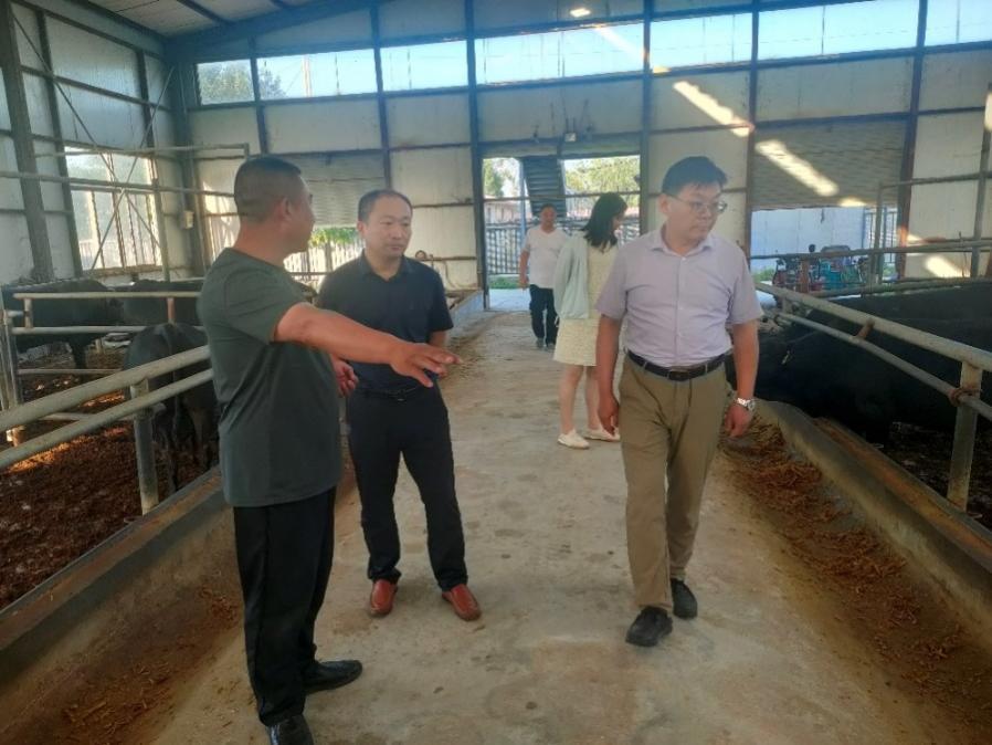 6月30日,沈伟教授、张西锋教授和山东省畜牧总站张淑二正高级畜牧师前往滨州市无棣县渤海黑牛国家级保种场、国家级肉牛核心育种场、山东省渤海黑牛新品种良种选育工程研究中心进行考察调研,与保种场负责人杨占岗就渤海黑牛种质资源保护及评价、种质创新利用和育种规划展开研讨,并探讨了校企科研合作事宜。